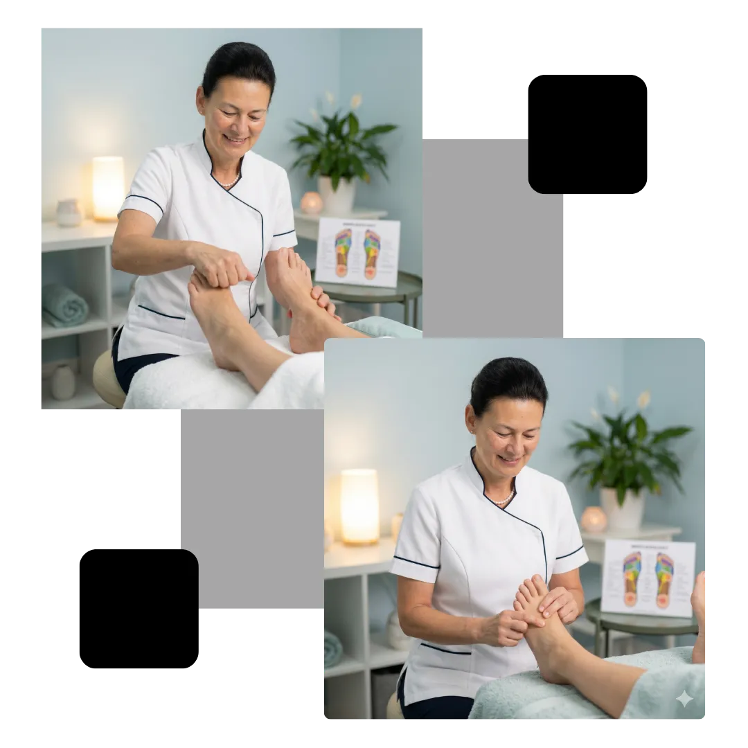 Il suo lavoro si concentra sull’ascolto del corpo attraverso le zone riflesse, con l’obiettivo di: